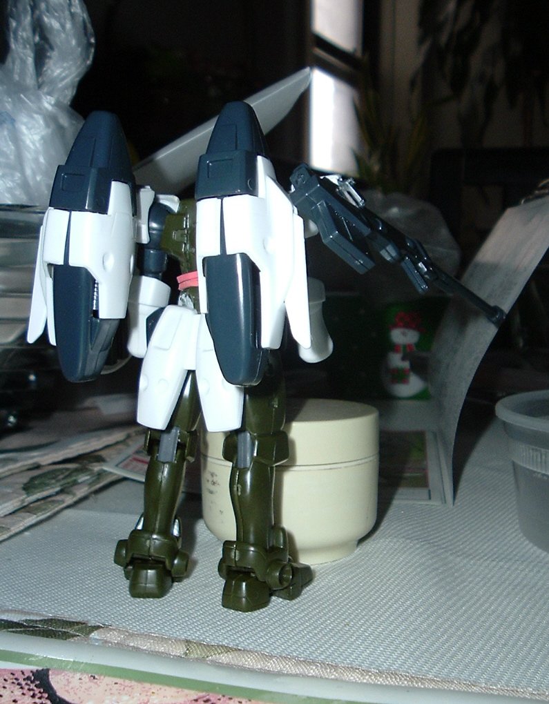 A front shot of both Gundams. Typically, parts from both kits were snipped off their runners and the resulting nubs were left unattended. The included stickers were applied and the rest was colored carefully with canvas paint. Dark patches were added to Sandrock's legs, no doubt to mimic the shading in the photos on the instructions.